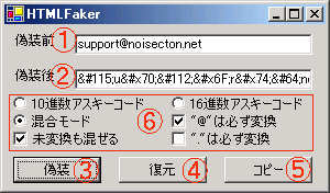5のコピーボタンを押すと3の偽装後の文字列がクリップボードに入ります。